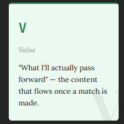 The actual content inside each book (what you receive once you find a match) is called the Value (V)
